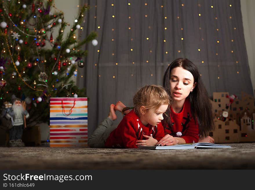 Mother and daughter near the Christmas Tree