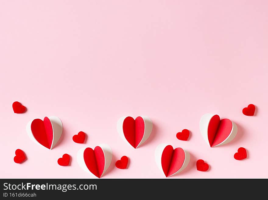 Red and white paper hearts Valentines day. Abstract 3D digital illustration Infographic.