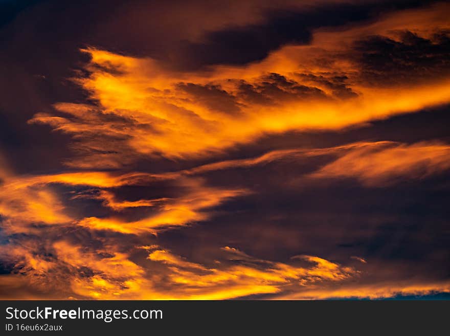Wallpaper Background Of Golden Orange Cloud Close Up - A Landscape Close Up Image Of Golden Orange Clouds During A Sunset Over The Mediterranean Wallpaper Background Photo