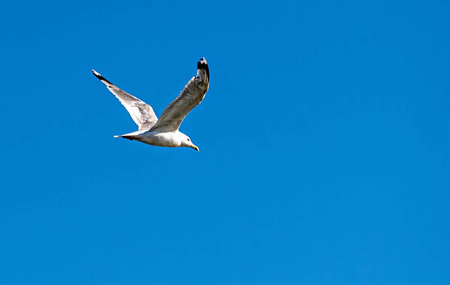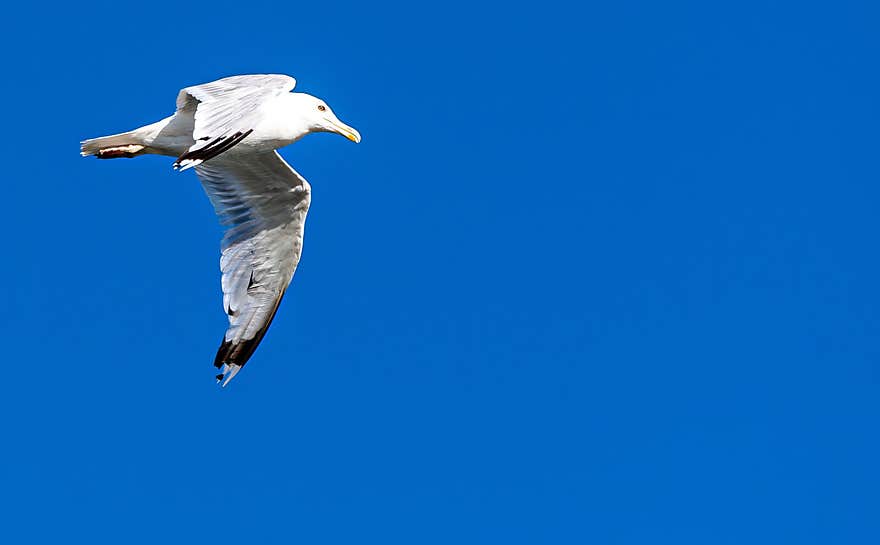 A girl with loose hair in a long red dress descends the stairs between the yellow rocks overlooking the sea. A rock can