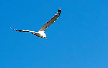 Kayakers on clear blue waters of Lake Huron near Turnip Rock topped with a small grove of pine trees, Port Austin, Michigan.