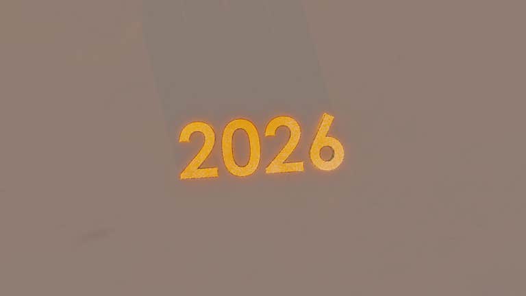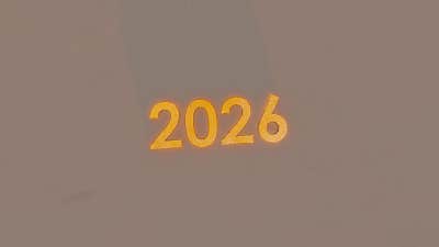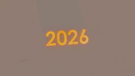 The image displays the number 2026 in a bold, yellow font against a grey background.