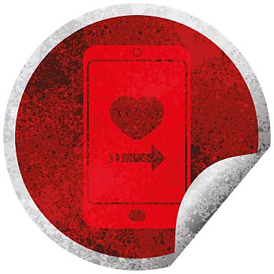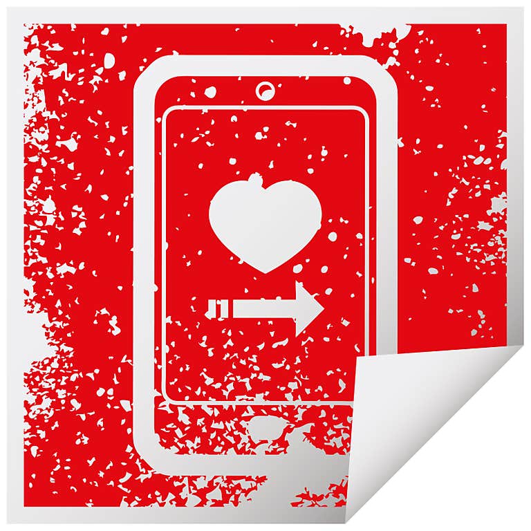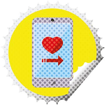 Distressed effect dating app on cell phone graphic icon