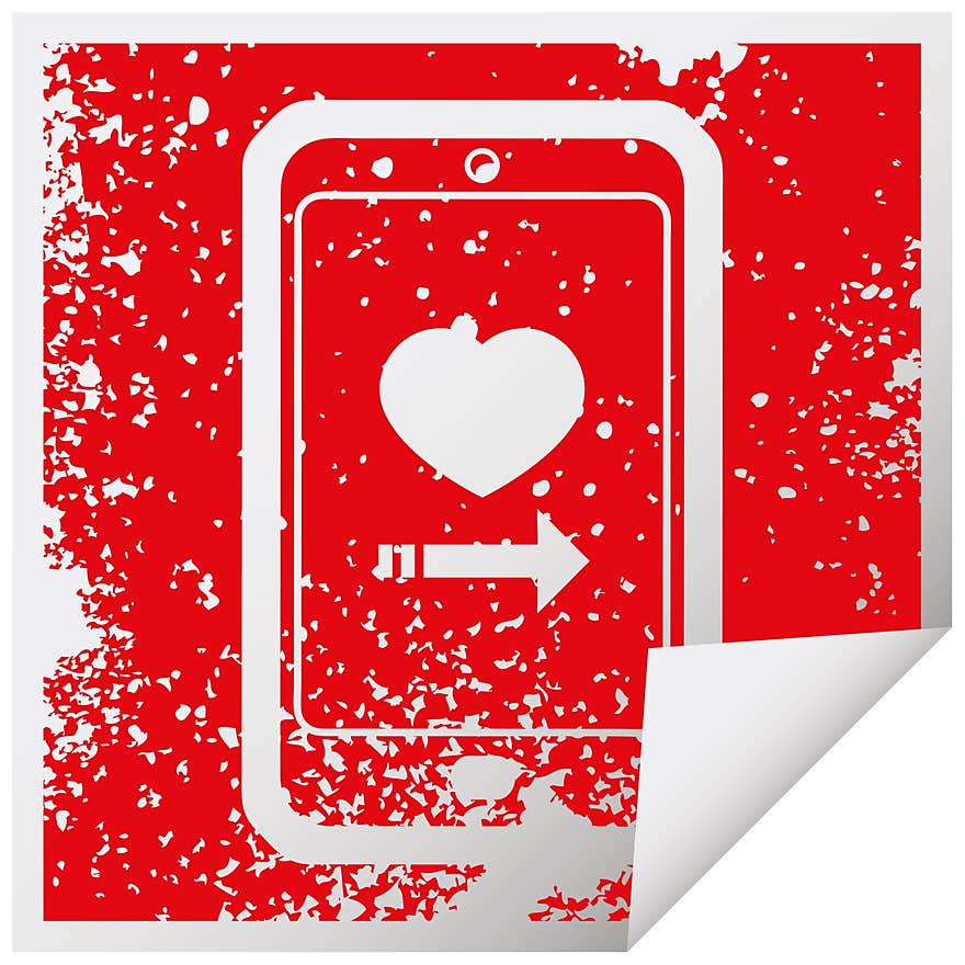 dating app on cell phone graphic distressed sticker