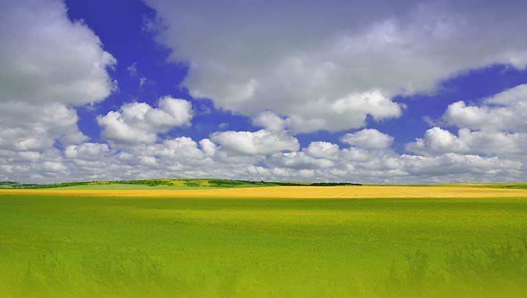 Summer Green Landscape.Beautiful Nature Background.Artistic Wallpaper.Art Photography.Sky, clouds, sun.Sunset,mountain,field.