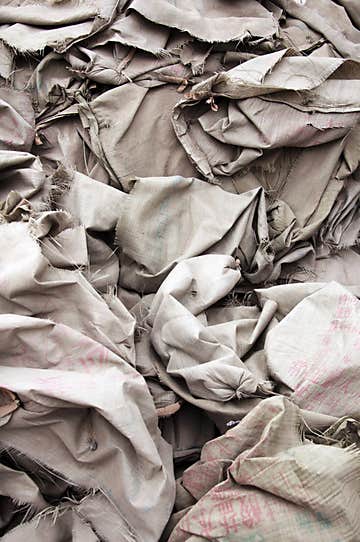 Plastic bottles in black garbage bags waiting to be taken to recycle.