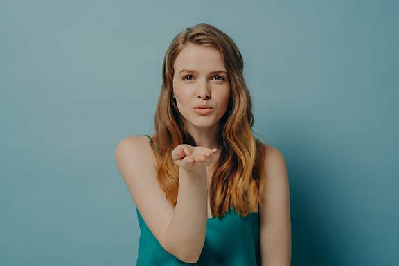Female expressing kindness by blowing kisses