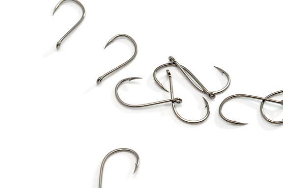 Set of illustrations of fishing hooks. Design element for poster, card, banner,emblem, sign.