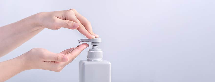 Washing hands. Asian young woman using liquid soap to wash hands, concept of hygiene to protective pandemic coronavirus isolated