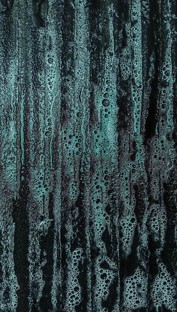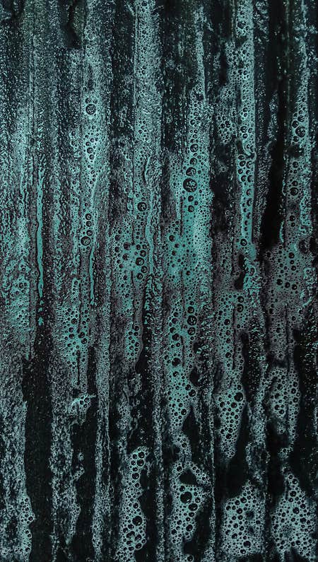 Cyan-colored laundry detergent on a laundry board, close-up shot, abstract background.