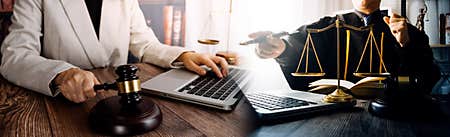 Lawyers discussing contract papers sitting in the table at office in the morning. concepts of law, advice, legal services
