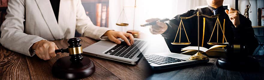 Legal concept gavel computer screen