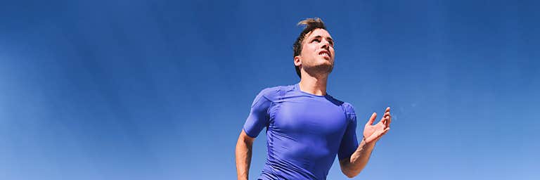 Running man athlete fitness sport exercise panoramic banner. Active lifestyle