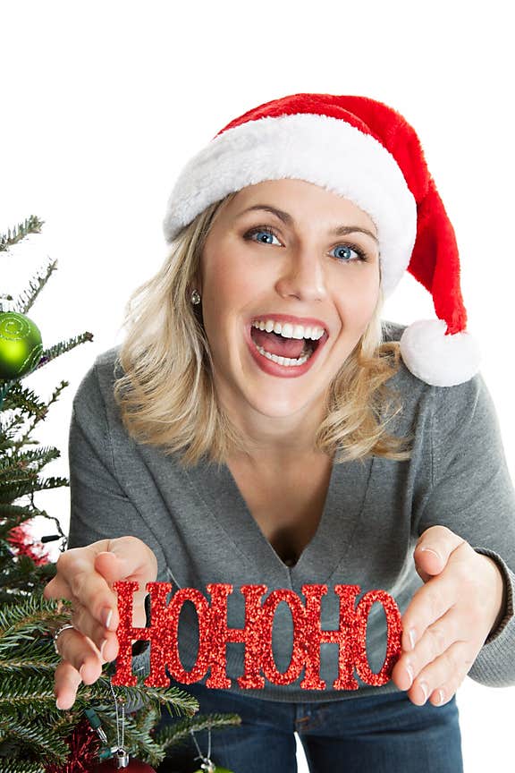 Cheery woman with Christmas ornament