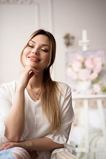 A woman artist with a picture on an easel at home. The painter paints oil paintings.
