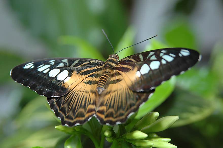 Beautiful butterfly, Clipper, Parthenos sylvia. Butterfly resting on the green branch, insect in the nature habitat. Butterfly sit