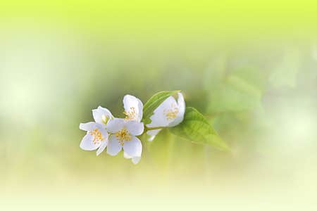 Beautiful Nature Background.Abstract Wallpaper.Celebration, love.Holidays.Jasmine Flowers.Art Design.Spring Flower.Green Colors.